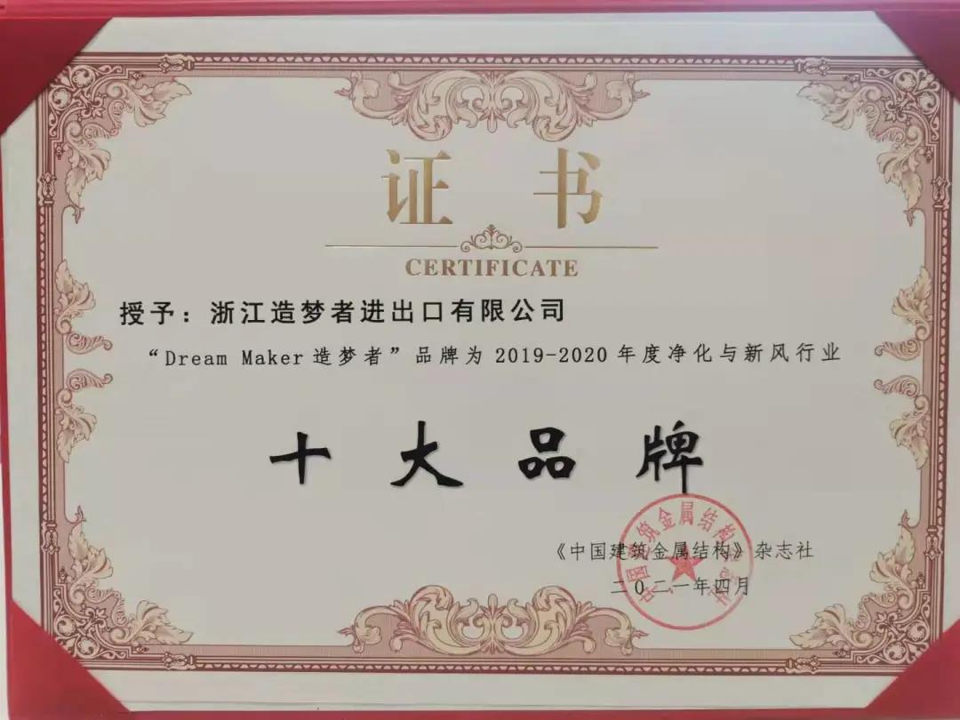 会上,Dream Maker造梦者被评为“2019-2020年度净化与新风行业十大品牌”,而且在此前的十大品牌评选中,Dream Maker造梦者新风机在产品品质、消费者口碑等各项评比中均名列前茅。