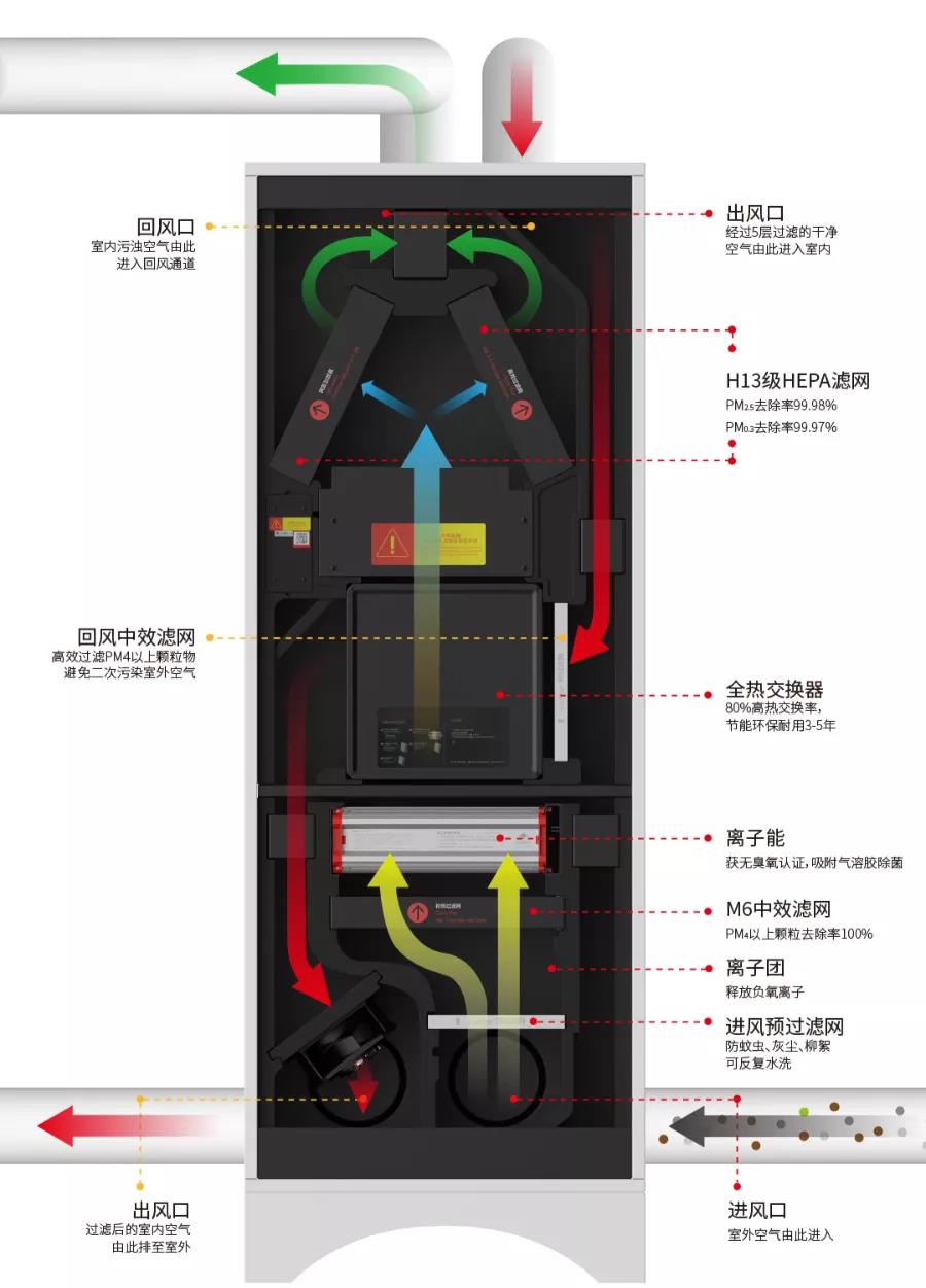 Dream Maker造梦者新风机五层塔式净化,对PM2.5去除率高达99.98%,PM0.3去除率达99.97%,尤其在应对雾霾、沙尘暴等恶劣天气中发挥出重要作用。