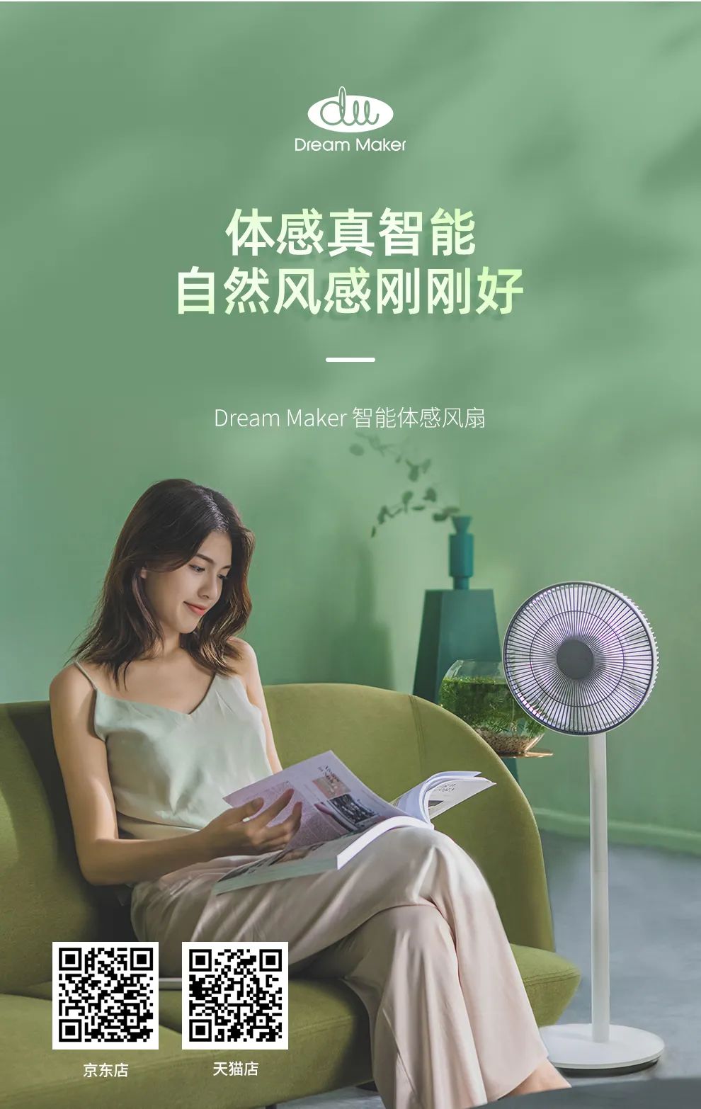 Dream Maker智能体感风扇简便组装,温和出风,智能调控,无声陪伴,是特别适合老年人使用的一款家电产品。