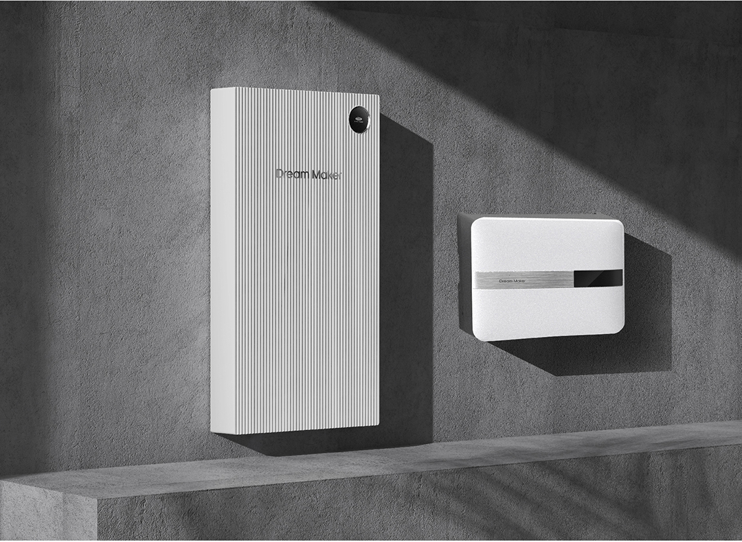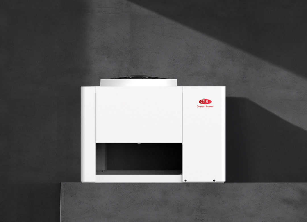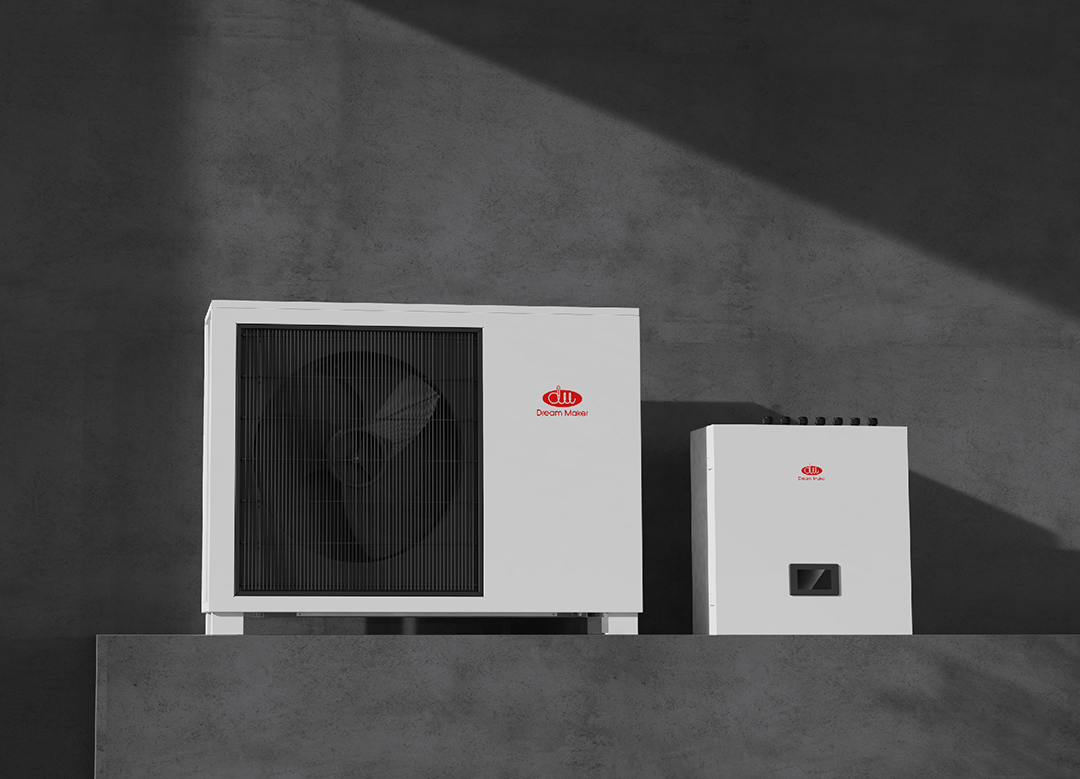 Dream Maker 造梦者在此次展会展出的核心部分是新能源热泵系统,整套系统由高安全性、高转换效率的储能系统+空气源热泵(三联供)组成。