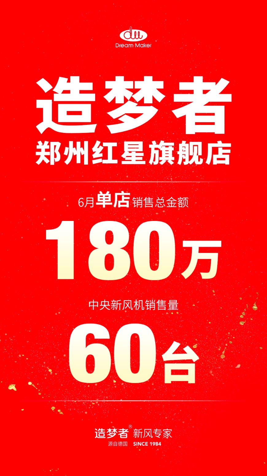 据了解,旭日暖通拥有自己的渠道和门店,经过团队的共同努力,同时借助造梦者新风产品本身的好口碑和高品质,仅6月份一个月,共销售出60台造梦者中央机(型号:F2350/F2400/F2500),销售额高达180万。