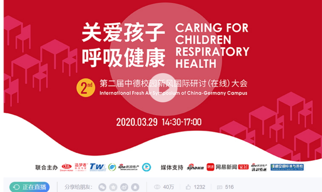 2020年3月,Dream Maker发起“关爱孩子呼吸健康”第二届中德校园新风论坛,邀请中德新风专家、资深教育从业者在线交流,全方位探讨疫情下如何借助新风系统守护校园空气健康。论坛引发广泛关注。
