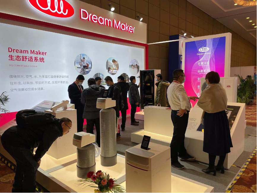 位于G2展位的Dream Maker展厅,首次以“生态舒适系统”形象亮相,全屋冷暖、全屋新风、全屋净水、全屋除湿、全屋热水五大系统共同组成Dream Maker生态舒适系统全品类产品线,完成了舒适家居单品牌全品类的布局升级。