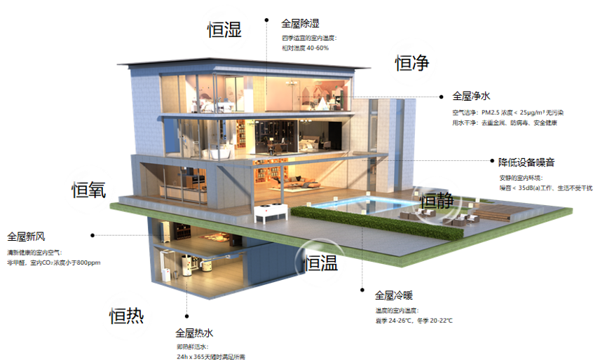 在演讲中,肖健伟展示了Dream Maker生态舒适系统,围绕阳光、空气、水三大要素,带给用户的“恒温、恒湿、恒氧、恒净、恒热、恒静”极致舒适家居体验。